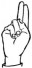 На ћирилици написано КЛАУДИЈЕ ПЕРОВИЋ састоји се из 15 слова [?]. Исписано ћириличном једноручном азбуком за глувонеме: